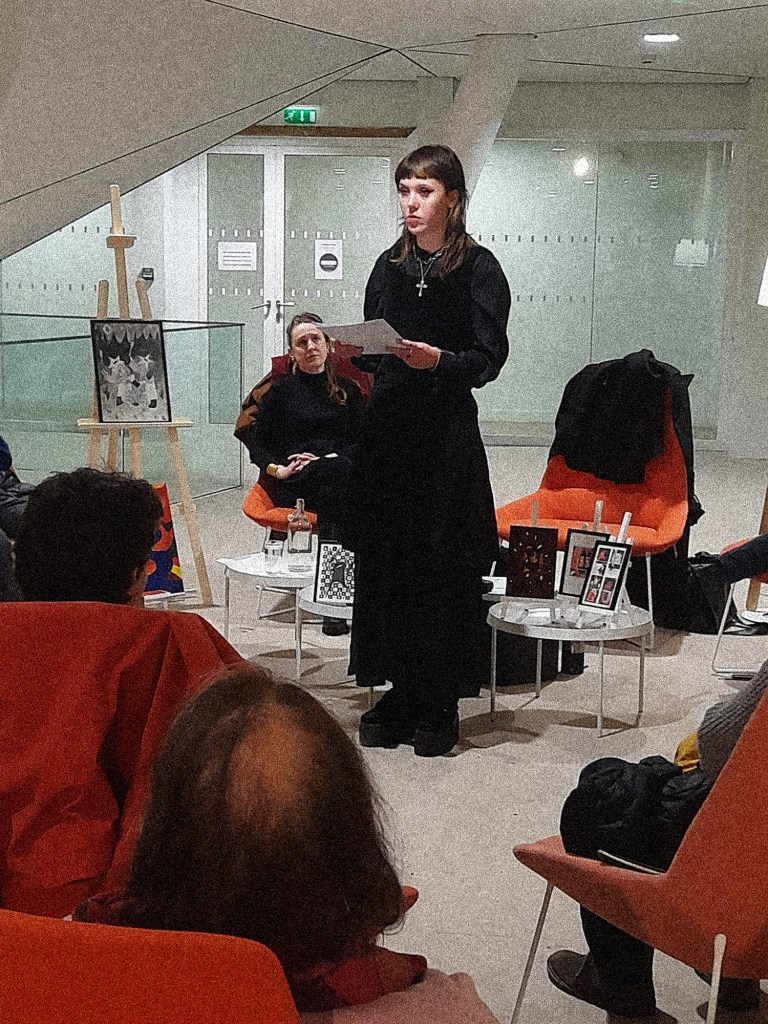 Lecture de poèmes, discussion et présentation générale de l’œuvre poétique et plastique.